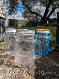 Classico barattolo in vetro Bormioli con scritta in rilievo, perfetto per cocktail o conserve creative.