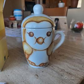 Graziosa mug con coperchio della Thun. Originale, mai utilizzata. Presenta ancora la scatola e il certificato. Altezza 14 cm circa. Articolo Thun P4591P00