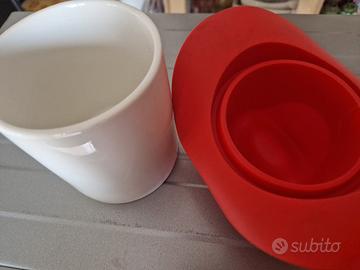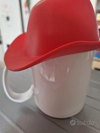 Mug e-my in porcellana con cappello Clint in silicone design normale design Andrea Vecera. 20 x 16 x h 16. Buona capienza 400 cc. Utilizzabile nel microonde.Tazza e coperchio lavabili on lavastoviglie. Nuova mai usata