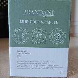 tazza mug termica Brandani in vetro con doppia parete, tappo in bambù. nuova con scatola. NO INPOST!!