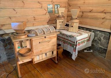 È possibile macinare le materie prime per ottenere semole. (Camera di macinazione: in acciaio inossidabile). Il meccanismo di regolazione della pinza è in metallo. Una valvola a saracinesca regola l'alimentazione del grano.