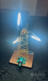 Vendo mulino a vento fatto a mano, funzionamento a batteria o tramite presa usb. Led dimmerabili e interruttore di spegnimento o accensione della rotazione pale. Con matteria ricaricabile integrata.