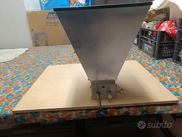 Vendo mulino per grani con regolatore della finezza di cereali con annessa tavola in legno dimensioni 50x40 cm Si aggancia facilmente un trapano nel perno girevole. SOLO RITIRO A MANO NO SPEDIZIONE