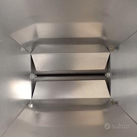 Vendo mulino per macinare malto per birra, rulli regolabili, capacità fino a 3Kg. Compreso di supporto in legno.