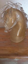 Testa di cavallo", scultura in vetro cristallo con applicazioni in foglia d'oro sotto sommersione. Murano, 1981, firmato a punta, locato e datato sotto la base (h cm 19) (lievi difetti)