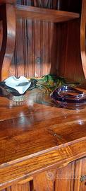 Tre oggetti porta cose , porta dolci, portacenere in vetro di Murano di Venezia. colori verde, nero/bianco e viola.
