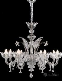 Lampadario in cristallo di Murano marca Off Interni diametro 120 cm con paralumi removibili in tessuto nero e piume di marabù.