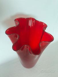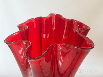 Vaso Murano fazzoletto vetro rosso trasparente. Altezza 40cm. Peso 4 kg. Dimensioni importanti ed elegante per arredo.#murano. Presenta qualche difetto ma rimane un pezzo di arredo posizionato in qualsiasi parte. Vicino ad una vetrata esalta il suo colore con la luce naturale.