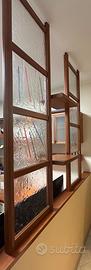 Muretto in legno verniciabile con top in ciliegio, portaformelle in ciliegio e formelle in vetro. Ideale per separare due ambienti. Lunghezza muretto 2 metri. Altezza totale 2,70m.