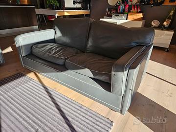 Divano vintage di Poltrona Frau in pelle pieno fiore di vitello, colore grigio chiaro.