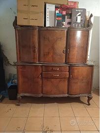 N. 1 Servante con top di vetro Enfilade Style Chippendale en Noyer, 1930s 3 ante + 2 cassetti L 178 X P55 cm X H100 + N. 1 Servante con top di vetro Style Chippendale en Noyer, 1930s 1 piede smontato + 1 piede spezzato 3 ante L 163 X P55 cm X H100