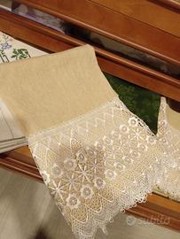 n.12 asciugamani in cotone robusto con balza di merletto macrame prodotto di sartoria uniche mai usate perfette resistentissime misura grande vendo a prezzo di realizzo consegna di persona