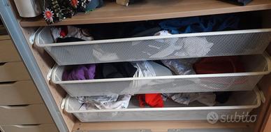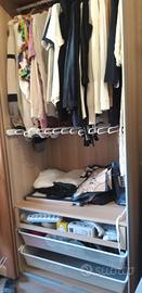 VENDO 2 ARMARI IKEA CON DOPPIE ANTE SCORREVOLI, CORREDATI DI 8 CASSETTI METALLICI,1 CASSETTO IN VETRO E LEGNO, 8 MENSOLE, 2 PORTA PANTALONI E 3 BASTONI APPENDIABITI,MISURE CM.238X 200 X 63.