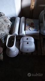 SVENDO per cambio progetto n 2 bagni completi cosi composti - 2 lavabi a colonna - 2 wc - 2 cassette in ceramica esterne - 2 bidet - 2 piatti doccia GRANDI - 2 chiusure doccia a vetro e alluminio BELLISSIME. specifico MAI MONTATI, MAI USATI - PARI AL NUOVO - COMPRATI DA MAX RICAS PALERMO