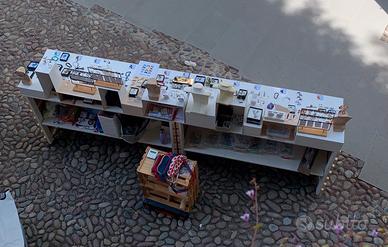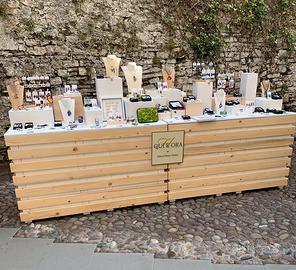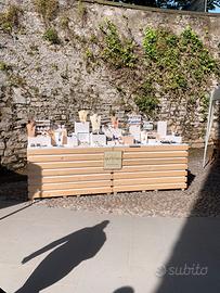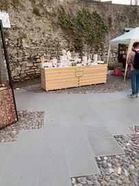 VENDO N.2 Banchi espositivi per mercatini hobbisti e artigianali. Ogni banco e’ largo cm.150, profondo cm.60, alto cm.95. Puo’ essere esposto in lunghezza oppure uno accanto all’altro. Richiudibili e trasportabili. Parte posteriore attrezzata di comodo mensolone. Fatti su misura con legno di qualità. Tel 3487803750