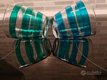 n. 2 bicchieri per acqua in vetro colorato colore azzurro e verde
