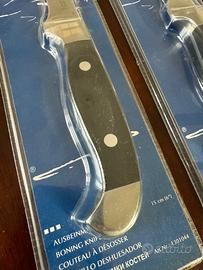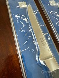Con questi magnifici (NUOVI) coltelli di BergHOFF potrete tagliare davvero qualsiasi cosa. La lama in acciaio inox di alta qualità lo rende un coltello ideale per sbucciare e tagliare verdure, carne o pane. Il lungo e elegante manico offre una maggiore sicurezza e una presa comoda grazie al design ergonomico. Il manico nero, pesante, assicura equilibrio e conferisce un aspetto sofisticato. È l'assistente perfetto in cucina