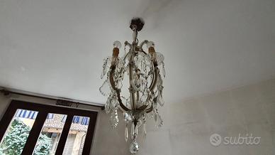 Vendesi anche separatamente: 1 Lampadario antico grande 1 Lampadario antico medio 2 Applique con postazione per n. 2 candele 2 Applique con postazione per n. 1 candela Fanno parte della stessa serie. Tutti funzionanti. Goccie in vetro di ricambio.