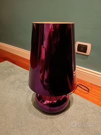 La lampada da tavolo Cindy rievoca e rende omaggio al classico abat-jour tipico degli anni 70. Progettata da Ferruccio Laviani, questa lampada ha uno stile particolare e giocoso, composta da un cappello conico che sovrasta una base a forma di goccia bombata. presentano qualche segnetto e la condizione dei fermi interni non condiziona il design.