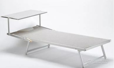 • Misure lettino aperto: 208 x 98 x 40,5 cm (lunghezza, larghezza massima, altezza da terra) • Misure lettino chiuso: 183 x 98 x 11 cm (lunghezza, larghezza, altezza) • Struttura in alluminio anodizzato • Tessuto Textilene lavabile • Viteria in acciaio inox AlSI 304, particolari in Nylon • Dimensione: 1 piazza e mezza • Schienale reclinabile in 3 posizioni • Cuscino poggiatesta incorporato • Apertura gambe con nuovo sistema salvadita • Profili struttura spessore 1,5 mm • Tettuccio parasole regolabile Peso: 10 kg
