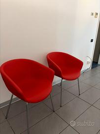 N. 2 Poltroncine in Ecopelle – Rosso con Gambe Cromate