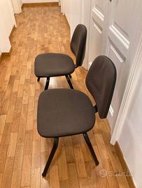 Coppia di sedie uguali. Seduta e schienale in tessuto di colore marrone. Telaio in metallo di colore nero. Ottimo stato. Sedie molto solide. Si trovano a Roma. Quartiere Prati. Inviare messaggio WhatsApp al 329.2635631 per il ritiro. Euro 12 ciascuna. NO SPEDIZIONE