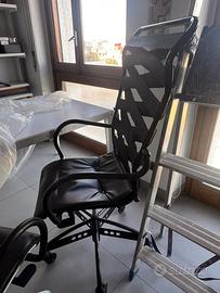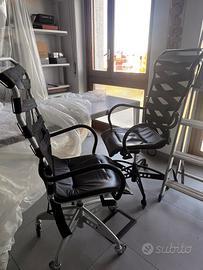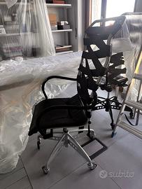 N. 2 poltrone direzionali con struttura in tubo di acciaio e seduta in alluminio. Schienale realizzato con intreccio di nastri elastici a tensione regolabile. Braccioli rivestiti in gomma poliuretanica.