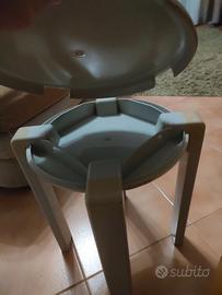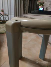 2 sgabelli colorati adatti a qualsiasi ambiente (bagno, cucina, ecc.) I coperchi si sollevano perché all' interno hanno dei piccoli vani utilizzabili. Uno sgabello è giallo. L' altro è bicolore ha i piedi grigi con il coperchio beige. Volendo vendo anche singolarmente