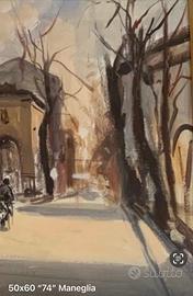 Vendo n. 3 dipinti ad olio firmati dal pittore torinese Edmondo Maneglia (1925-2003) Edmondo Maneglia è stato un pittore torinese nato a Koziu, in Turchia, nel 1925 e scomparso nel 2003. I suoi soggetti preferiti sono le vedute urbane (molte su Torino) e scene di vita cittadina, ma anche le nature morte. il prezzo include le cornici in legno