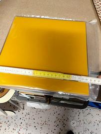 N. 3 lampade da parete quadrate in vetro color curry e ametista. Misure cm 25x25 Attacco lampadina E14 Condizioni ottimali