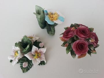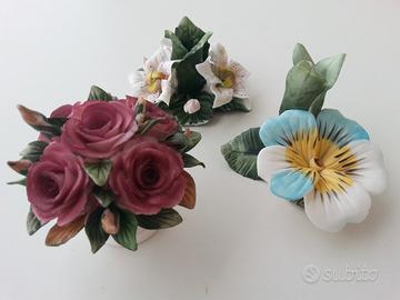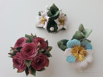 N° 3 oggetti in ceramica stile Capodimonte da soprammobili. Nuovi ed integri. Piccoli oggetti non ingombranti.