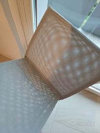 Sedile e schienale rivestiti in tessuto traspirante e facilmente lavabile (colore chiaro).