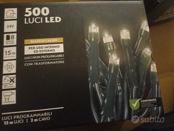 N.3 Catena luminosa Natalizia Dictrolux con 500 LED. - 8 giochi di luce. - Lunghezza catena 15m. - Adatta per interno/esterno. - Cavo trasparente. - Luci non prolungabili. - Con trasformatore. - Cavo alimentazione MT.2