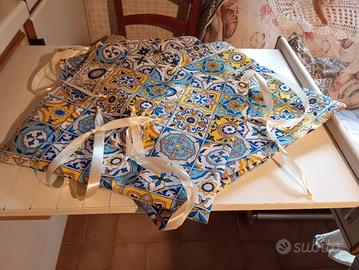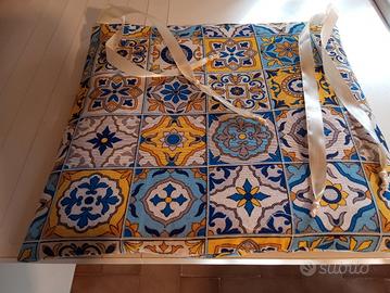 N 4 copri cuscini da sedia con lacci in raso. Misura cm 40 per cm 40. Si inseriscono facilmente sui vecchi cuscini senza cerniera. Handmand.