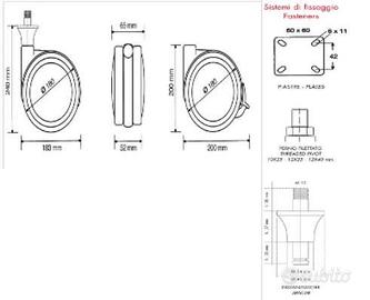Vendo ruote robuste da arredamento, marca Biemme Italia, acquistate, ma mai utilizzate. N. 2 ruote con freno + n. 2 senza freno. Le caratteristiche sono: