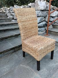 n.4 sedie in banano intrecciato con piedini wengè in buono stato per arredo giardino , o taverna o in appartamento, schienale alto , dimensioni 50*50*105