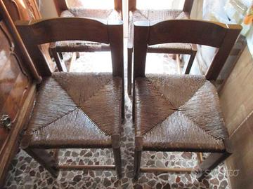 Nr. 4 sedie anni 70 in paglia e legno massello di palissandro pieno e pesante non sono né tarlate né sgangherate, ottime per cucina o taverna da riadattare. Disponibili, per inutilizzo, 6 sedie stile Thonet, 2 sedie diverse stile Shabby, 6 sedie diverse, 1 salotto formato da parete attrezzata, tavolino e 4 mensole, 1 credenza stile Arte Povera, 1 specchio stile Shabby, 1 specchio dorato da appoggio anni 50, 1 specchio anni 80.
