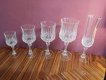 Servizio da tavola di n. 50 scintillanti calici Cristal D'Arques Longchamp in cristallo al piombo francese, vintage anni 80, composto da CINQUE formati diversi: