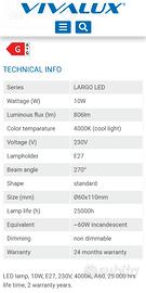 VIVALUX lampadina LARGO LED ∙ 10W ∙ 806lm ∙ E27 ∙ 4000K Vendo per inutilizzo. Disponibili 6 lampadine, vendute anche singolarmente a 1 euro/cad