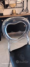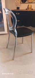 Vendo n°6 sedie stile barocco moderno, con sedute in ecopelle nera, gambe in acciaio e spalliere in plexiglass. Ottimo stato, vendo per cambio stile a 35 euro cad.