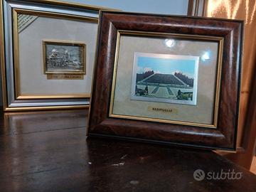 Paesaggi e monumenti italiani su foglia ora o argento di varie dimensioni, incorniciati e in buone condizioni. Uno è firmato Francoise Dubois - numismatica ambrosiana. Prezzo euro 25 cadauno; euro 130 se presi in blocco