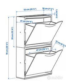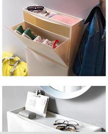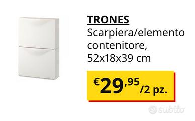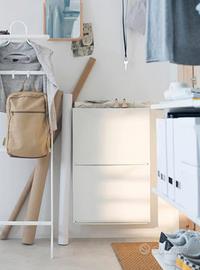 Vendo n. 8 elementi di colore bianco. Combina tutti i mobili che vuoi e usa il piano superiore per appoggiare il portafogli, il cellulare o le chiavi. Una soluzione poco profonda, ideale per gli ingressi piccoli. Il mobile occupa uno spazio limitato poiché è poco profondo, ed è ideale per riporre scarpe, guanti e sciarpe. Se le tue esigenze cambiano, puoi ampliare la tua soluzione montando diversi mobili l'uno sull'altro o affiancandoli. La parte superiore del mobile ha uno spazio per appoggiare piccoli oggetti come chiavi, monete e cellulare. L'anta è facile da togliere quando vuoi pulire l'interno del mobile. Materiale plastico Marca Ikea Prezzo di vendita presso Ikea 29,95 euro per 2 elementi Ritiro in loco. Non vendo separati. Prezzo 90 euro per tutti e 8 gli elementi.