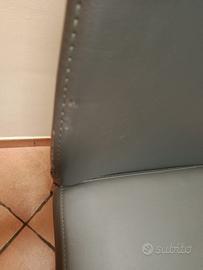 Vendesi per mancanza di spazio 4 eleganti sedie in ecopelle grigie ,in buono stato,presentano qualche piccola imperfezione evidenziata nelle foto,struttura solidissima e molto comode.