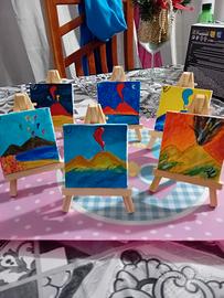 Quadretti su tela dipinti a mano misura cm 7•7 con treppiedi in legno. Realizzabili anche piu grandi e con prezzo varibile