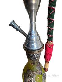 Vendo narghilè comprato in Tunisia, vetro ed acciaio con decorazioni, interamente fatto a mano da artigianato locale. Mai utilizzato come narghilè ma solamente come arredamento.
