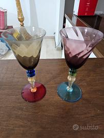 Nason & Moretti Murano 6 Calici Acqua modello Sandra Colore Arlecchino Bicchieri nuovi mai usati ancora con la confezione e imballaggio originali.