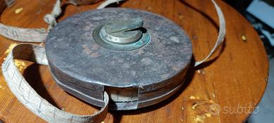 Mettiamo in vendita un affascinante e raro nastro metrico vintage da geometra, un pezzo di strumentazione storica risalente probabilmente alla prima metà del XX secolo.