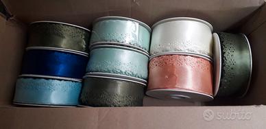 IN OFFERTA Nastro raso bobina da 25mt H. 40/50mm colori e tipi assortiti, € 10,00 a rotolo.