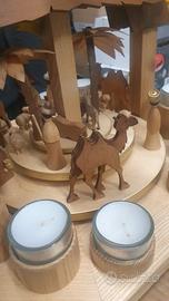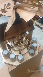 natività in legno con meccanismo girevole completa di candeline, nuovo mai usato. Made in Germany