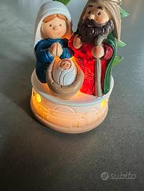 Vendo decorazione natalizia raffigurante la Natività con Maria, Giuseppe e Gesù Bambino.